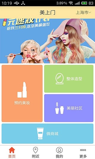 您还在等什么,美妆造型就找美上门,数款一线妆品,敏感肤质的您也OK;跟混乱的市场价说Byebye;现在注册还送优惠券哦,女神,快行动吧!