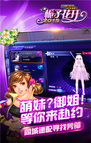 栀子花开2015是史上颜值最高的大型3D时尚社交类热舞手游《栀子花开2015》全新移动休闲社交理念,打造最青春的时尚交友平台;独有全民偶像功能,投票支持你中意的那个TA;双人私密交互功能与即时语音交流,享受耳鬓厮磨的亲密诱惑;超仿真人物形象,萝莉、御姐、大叔、正太,多种风格任你选择;搭配千款时尚衣橱,分分钟帮你完美变身搞定男神/女神。我们的校花校草已经准备好,你敢来赴约吗!流行是什么?流行是你和我在这里,不再为千篇一律的服装所烦恼,摆脱走哪儿都“撞衫”的尴尬,释放内心深处的青春个性,流行就是要让全世界都看我。《栀子花开2015》打造个性时装系统,超仿真人物形象,令你360°自拍无死角。搭配上千种精心设计的潮流服饰,你可以变身萝莉、御姐、女王,也可以是是大叔、正太、小鲜肉,从此变装感受明星范儿!更有炫酷魔法道具点亮你的舞台,分分钟帮你完美变身搞定男神/女神。在这里,你就是独一无二的大明星!
