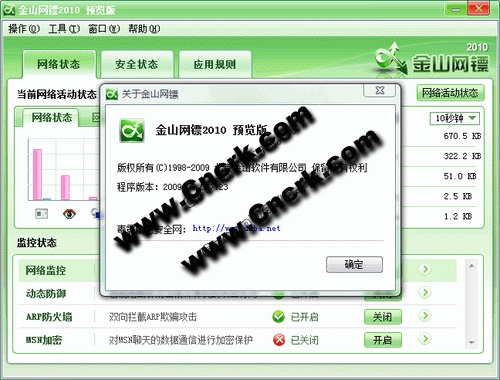 欢迎试用金山网镖2010!金山网镖2010是金山互联网安全子公司历经5年重新架构新引擎,基于全新底层架构实现的新版个人防火墙产品。为了帮助广大个人计算机用户更好的抵御日新月异的互联网安全威胁。
