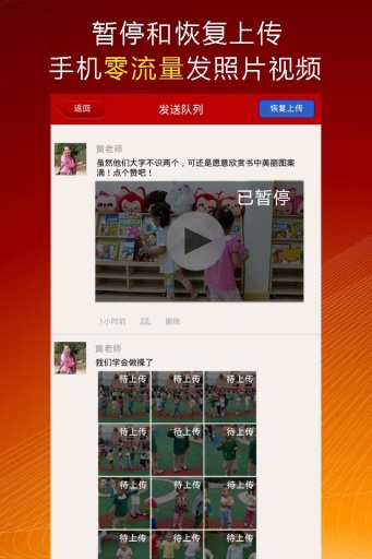 3、有的暂停发送功能,即使一次发送100张照片和N多视频,也不用你一分的手机流量;