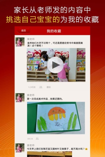 5、有的家长收藏,从老师发布的众多照片视频中选择自己宝宝的,收藏成宝宝成长档案。