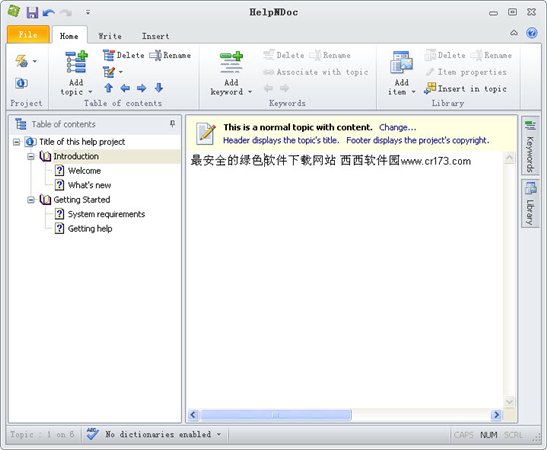 通过在内置的字处理器输入你的文本的方式创建 HTML 帮助,并且点击完成按钮以便获得一个就像你亲自设计一样的完整的功能帮助忘记。该软件在一个完全所见即所得的环境当中提供拼写检查功能。