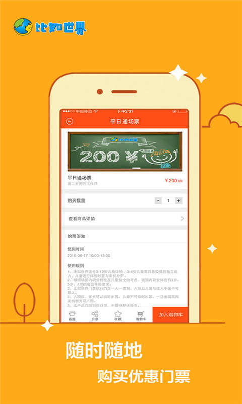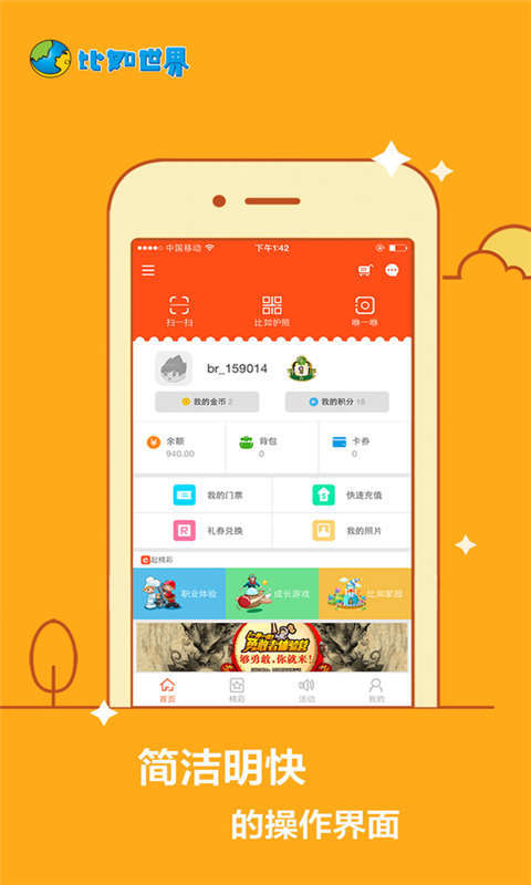 1.商品展示:比如世界,是专为3-12岁少年儿童设计的、由少年儿童自主管理的儿童城市。2.优惠活动:随时随地查看最新优惠活动与资讯;