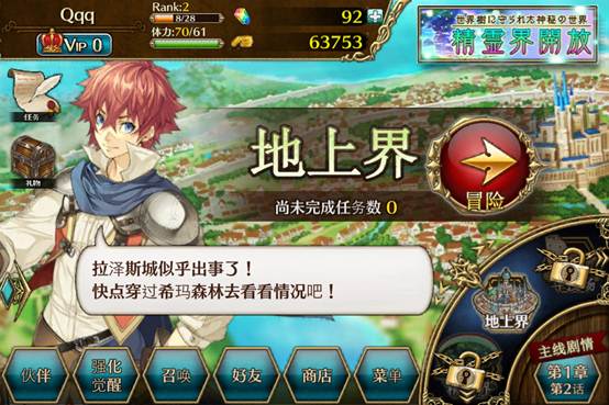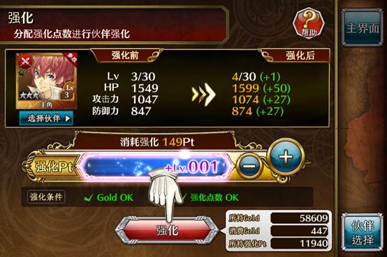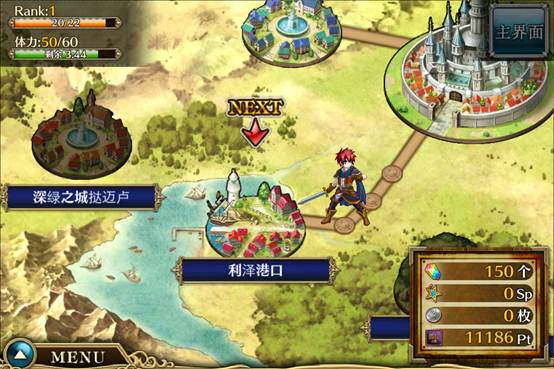 《十字召唤师》进入大地图之后就能看到能前往的据点或城镇,跟着指示走就能一步步完成主线剧情!每进行一个副本都需要消耗一定体力,体力槽显示于地图界面左上角,随着时间逐渐恢复,也可以消耗召唤石马上补充。