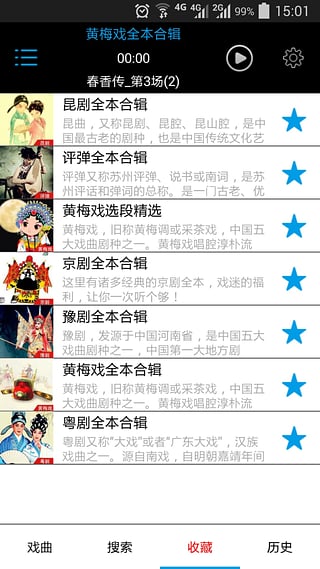 戏曲迷 apk为延续中国千年传统的古代戏剧类节目而生产的手机应用软件,它为戏曲爱好者提供了大量的戏曲节目表演,不论你是京剧党还是黄梅戏热衷死粉,都能在这里找到你的真爱,保证让你过足戏曲瘾!