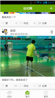 【运动】:呼朋唤友去场馆畅快耍(场馆查找、预订、路线指引、导航),自己一个人也可以跑个步(跑步详情、历史记录、分享);【圈子】:看看圈子里的人最近都在干啥,偶尔也可以低调滴秀一下自己哦;