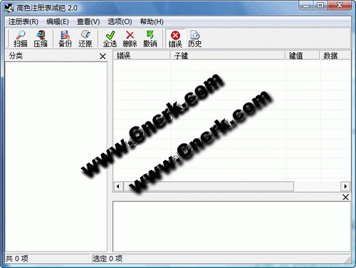 高色注册表减肥 V2.0 简体中文绿色免费版 快速清除注册表垃圾,清除前自动备份。可删除不使用的时区、区域、键盘布局、登录的软件、Windows 外观方案。能够查找 Windows 的注册表中的垃圾,并给予清除,功能上超越微软的 RegClean 4.1a, 而且修正了 RegClean 的Bug。最新的版本能够清除更多的注册表垃圾,让你的系统真正干净。能够扫描的错误与垃圾 包括:错误的类,错误的菜单排序,错误的反安装程序,不存在的文件,错误的 Dll 和 Vxd 文件