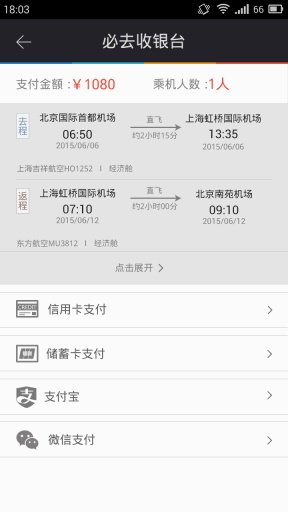 省时:用户体验至上,告别繁琐购票程序,必去实现手机号码直接购票,自动推荐最优航班,提供多种便捷支付方式,易宝,支付宝、微信、银联、信用卡,随意选择支付方式。航班动态实时查询。