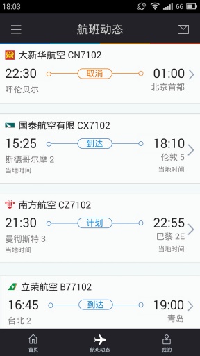 3、航班动态实时查询;