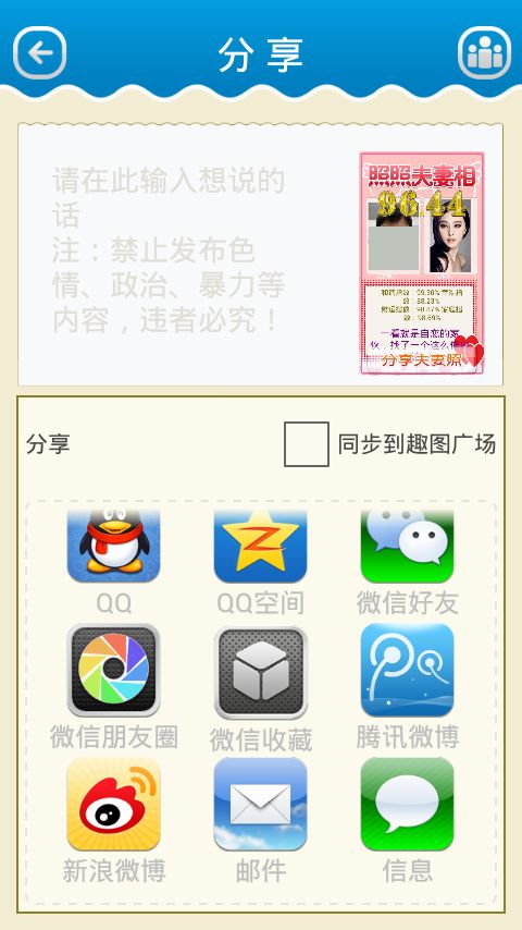 测夫妻相 1.3.1 更新内容:优化了分享功能