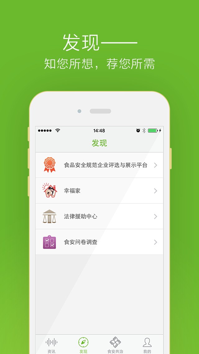 (4)食事求是App整合国家食品安全最优资源,为您提供标准、专业的食安知识;