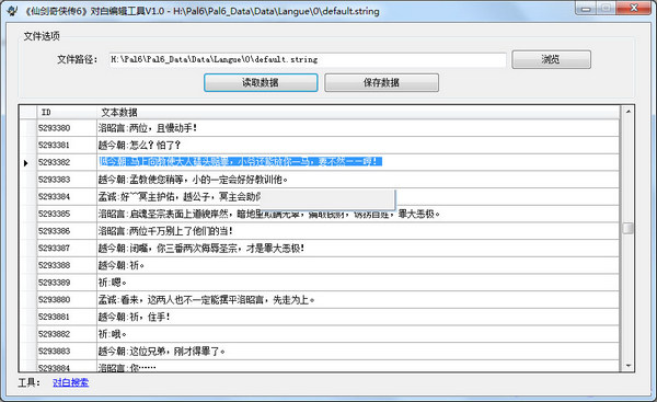 3.点击浏览选择对白文件(游戏对白信息文件位于Pal6_Data\Data\Langue目录中)