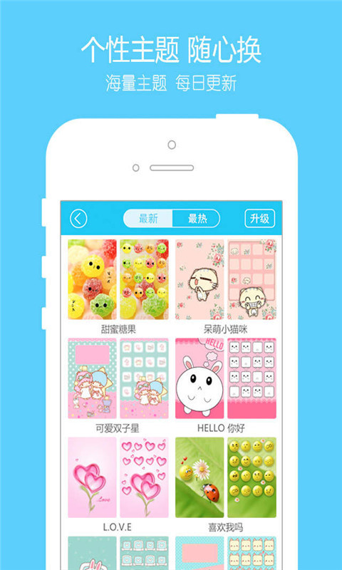 海量高清主题每日更新,主屏+琐屏的完美搭配,清新,可爱,酷炫,唯美,情侣,卡通,节日,日历等应有尽有,让你的手机与众不同。