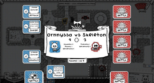 地下城工会是一款设定相当有趣的卡牌地下城游戏,玩家在游戏中并不是直接控制一个角色来进行游戏,而是做个默默无闻的幕后英雄,搭配包括敌人、物品、地下城层数等类型的卡牌建立一个地下城,并利用房间、敌人、财富和陷阱这四大元素为游戏角色的闯关铺平冒险道路。地下城工会这款游戏趣味性非常高,游戏内容也十分丰富,实属一款非常不错的佳作。《地下城公会 Guild of Dungeoneering》是由 Gambrinous 制作,Versus Evil发行的一款立意独特的游戏。在游戏中,玩家需要自己建造地下城的各种设备、机关、陷阱及妖怪等打斗难题,以此来训练自己的英雄角色并让他们成功通过你设计的地下城。也就是说你设计的地下城既不能太难,让英雄无法通关;也不能太简单,造成英雄锻炼不足。所以严格的说本作偏策略元素更多与 RPG 元素。