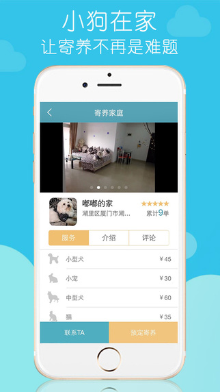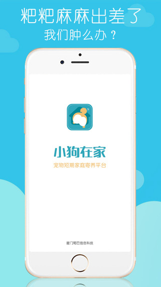 小狗在家,将为宠物主人提供一个家庭寄养,知识共享,交友的平台。小狗在家将改变宠物寄养的现状,为宠物打造一个有爱的家庭寄养平台。小狗在家,像你一样爱它。全国120个城市,800个寄养家庭,宠物主人通过定位或者搜索城市,找到附近的寄养家庭,通过图片和文字等信息进行了解,以及在线沟通,选择寄养时间并在线支付。