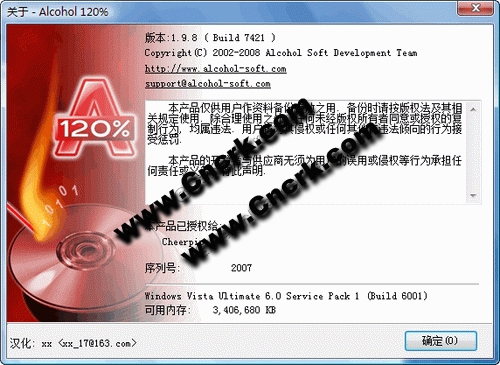 光盘刻录软件的完整解决方案,能完整的仿真原始光盘片,让你能不必将光盘映像文件刻录出来便可以使用虚拟光驱执行虚拟光盘且其效能比实际光驱更加强大;另外,Alcohol 120% 可支持多种映像档案格式,你可以利用其它软件所产生的光盘映像文件直接挂载进 Alcohol 120%之虚拟光驱中,便可直接读取其内容;你也可以直接将 CD,DVD 或光盘映像文件刻录至空白 CD-R / CD-RW / DVD-R / DVD-RW / DVD-RAM / DVD+RW 之中,而不必透过其它的刻录软件,方便你对光盘及映像文件的管理。产品特色:可虚拟 31 部虚拟光驱;让计算机游戏玩家拥有 200 倍超高速光驱,不用烦恼光驱速度太慢;可直接进行对刻或将映像文件刻录至空白光盘片;同时支持多部刻录器并同时进行读取及刻录动作;可用 RAW 模式执行 1:1 的读取和刻录并忠实的将光盘备份或以光盘映像文件储存;支持读取及刻录各式光盘映像文件 (mds, ccd, cue, bwt, iso 和 cdi);使用简单,使用鼠标点选三次即可执行对刻;支持 AudioCD、VideoCD、PhotoCD、Mixed Mode CD、CD Extra、Data CD、CD+G、DVD (Data)、DVD-Video 的读取及刻录。