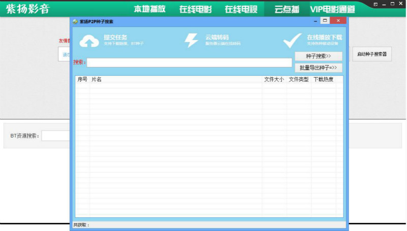 紫扬影音是新一代的影音播放神器,播放的影视来源包含:本地、在线电影、在线电视、种子搜索以及云点播,满足了用户的多种需求。