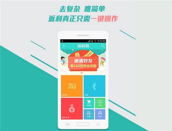保鲜期返利网具有返利购,商城,以及足迹购买等功能模块,并且特别加入了特价专享区,物美价廉惊喜不断;还有9块9包邮哦!