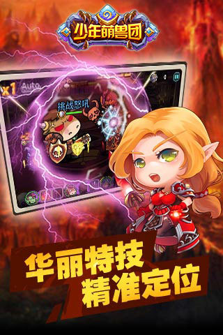 《少年萌兽团》主要采取了英雄培养的的形式,多形态多表情美术细节刻画英雄,同一个英雄,在放技能,受击,死亡等不同情况下会有不同的表情。展现了不同英雄之间的实力和特色。让玩家拥有身临其境搬的游戏体验,英雄划线、自由点控微操走位相结合,给用户超强的刺激性和代入感。游戏采用触摸的方式进行操作,通过手指滑动或点击控制角色的操作,击打小怪的同时,都将会不断的提升自身的力量,解放你的双手,让战斗更加激烈!