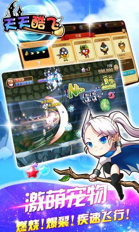 《天天酷飞》是一款休闲之作,游戏中融合了动作、飞行、跑酷因素在其中,可谓是多种多样,趣味多多。你将会和小魔女们一起来打怪兽,还有一些逗逼的魔宠,你将会在游戏中发现新的乐趣,相信你会喜欢的!【游戏特点】