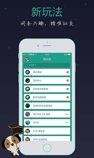 捞月狗是一款手机社区交友聊天软件,捞月狗为你带来更多的游戏用户,结交志同道合的玩友,一起交流和切磋游戏技艺和心得,捞月狗让玩游戏的你不在孤单,找到组织和大家一起奋斗,因爱好走到一起,快乐分享你的游戏生活,捞月狗为带来不一样的游戏交友体验。【软件特点】