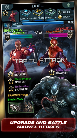 领导一个团队的Marvel超级英雄和恶棍和对抗的阴谋削弱在这个免费任玩策略RPGSHIELD操作为您的移动设备。招募和升级你最喜欢的英雄和发挥他们的独特力量在战斗。加入的朋友,并采取了着名的Marvel超级恶棍像主销和毒液,或者争夺主导权奇迹宇宙对对手球员的联盟。时间在流逝,它的时间来拯救世界。你会加强准备好迎接挑战?漫威英雄联合(MARVELUnited)游戏特色