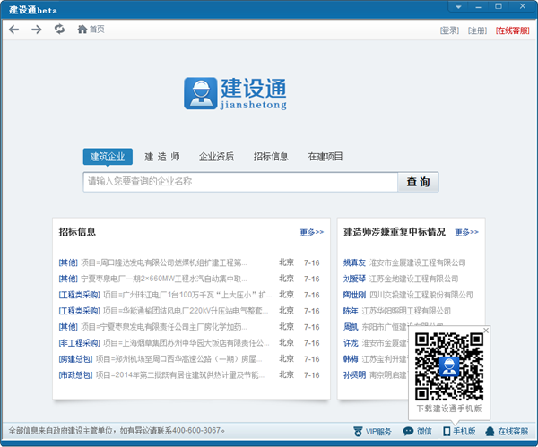 建设通 v1.0 官方版 建设通(客户端),是建筑网为了提升建筑企业公平竞争和透明发展,营造全国建筑市场诚实守信的良好环境,运用现代化的网络手段,采集各地诚信信息数据,用于查询并发布建筑市场各方主体诚信行为记录,对失信行为进行曝光;整合表彰奖励、资质资格等方面的信息资源所搭建的软件。