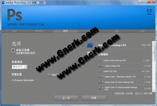 请在安装第三步时选择自定义选项(在安装语言上面),这样可以选择右边的组件选项,默认为全部安装 ,如果在运行setpu.exe中提示错误,请安装Microsoft Visual C++ 2005 SP1