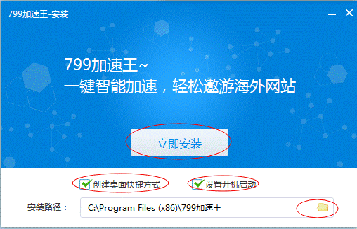 自由选择是否创建桌面快捷方式与开机启动选项并选择安装路径,点击“立即安装”开始安装799加速王。