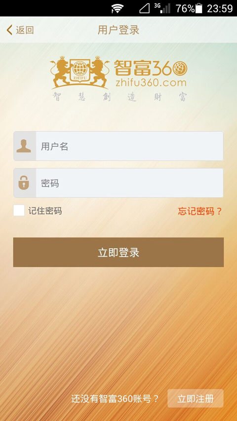 智富360是由智富金融信息服务(上海)有限公司研发的一款“一站式全方位创新型互联网金融服务平台”。智富360结合全球金融发展趋势与互联网TMT创新技术,秉持“智信未来,富惠中国”的企业使命,让每一个人尊享到360°全方位金融服务,成为中国互联网汽车金融的第一品牌。集团始终专注于为企业和个人提供互联网汽车金融、财富管理、融资租赁、企业信用管理等综合性金融服务,并在北京、南京、杭州、济南、合肥、成都、昆明、郑州、南宁、苏州、无锡、常州等全国四十多个城市构建了完善的网络,为客户提供全方位、个性化的互联网汽车金融服务平台。【更新日志】