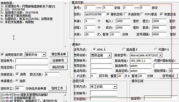 3、一键更换IP功能(支持ADSL,路由器),并支持添加代理IP,轻松突破注册限制!