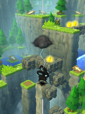 在攀爬的过程当中,玩家将会遇到突发的状况,例如从山上滚下来的石头和木头,还有可能遇到一小块雷雨云,它们时不时会向下劈出一道闪电,可别被雷中了。不过除了这些危险之外,在山路上还会随机散落着金币,玩家可以将这些金币收集起来。此外,由于山羊在爬山的过程中是需要消耗能量的,所以当画面中出现提示的时候,玩家就需要赶紧找一个草丛吃草,不然山羊就会因为体力不支而倒下,不过在过程中如果看见草丛也可以顺便将它们消灭。