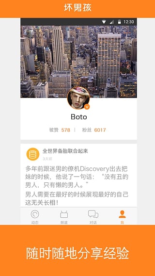 2.0版本主要特色是:1.像朋友圈一样玩转坏男孩社区