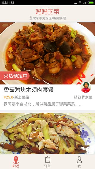 2、用户可通过手机客户端查看周边区域妈妈提供的私房菜;