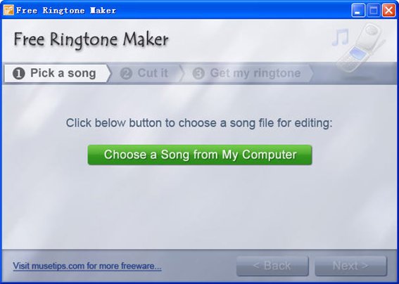 步骤1:选择一首乐曲为了创建自己的免费铃声,只需按一下按钮,从我的电脑选择一首歌曲。