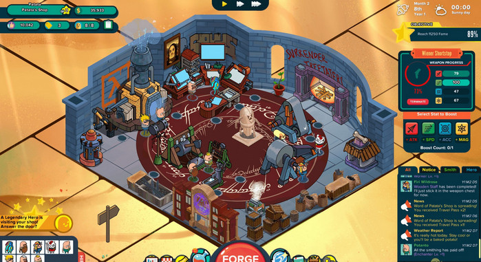 《神圣土豆!武器店?》为玩家带来了一个关于武器商店的有趣故事,还由令人振奋的游戏体验。游戏的玩法和一些比较经典的模拟经营游戏有些相似,不过本作中模拟和经营的元素并不多,你只需要打造武器,将它们卖掉,武器的制作流程很长,玩家需要花上大量的时间用来等待。与过你想消磨时间,这款游戏时不错的选择。【使用方法】