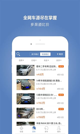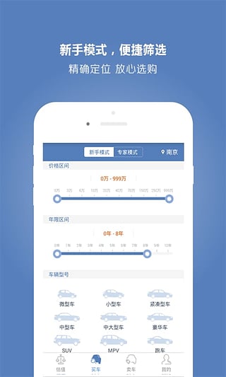 1.精确估值:让您轻松买到合理价格的二手车不再被宰。我们提供公平价、预期成交价、经销商置换家、建议标价、市场最低价、市场平均价、市场最高价。2.买车:根据需求筛选条件找到最适合您的二手车,为您实时推荐最新车源。