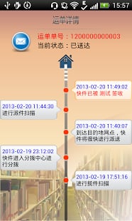 在运单号输入框内手工输入运单号,然后点击边上的查询小圆圈按钮,通过移动客户端的照相机镜头扫描纸快递单上条形码号码,一旦扫描后自动触发进行查询。