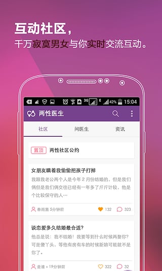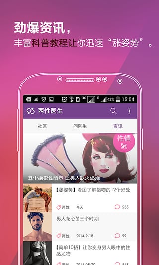 春雨男女科是一款男女隐私健康问题咨询软件,有些病症难以启齿,心理压力大害怕去医院专家就诊,那么现在不用担心,有春雨男女科为你的隐私健康问题排忧解难,不管男女的什么隐私疾病都可以在春雨男女科得到最好最信赖的解答,绝不敷衍,对每位患者负责到底。