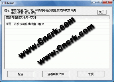显示被U盘病毒修改为“系统”“隐藏”属性的文件和文件夹,并且恢复其正常属性,避免了手工更改的繁琐