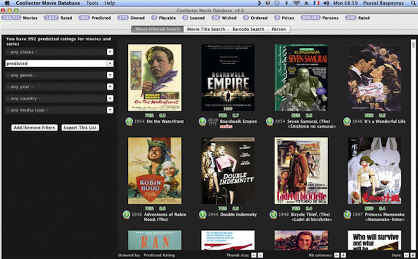 Coollector Movie Database for mac电影数据库是电影爱好者最完整的工具。它是一个巨大电影和系列的数据库,你有多喜欢它,你希望看到什么,都可以自定义。Coollector Movie Database for mac也是一个视频集合经理,跟踪你的dvd在它们存储的地方,分辨哪些是你租借哪些是你购买的。它可以处理你的数字集合,它拥有一个闪电般的文件扫描功能。最后但并非最不重要的时它会分析你的口味给你观影建议帮助你选择你有过的最好的电影。