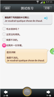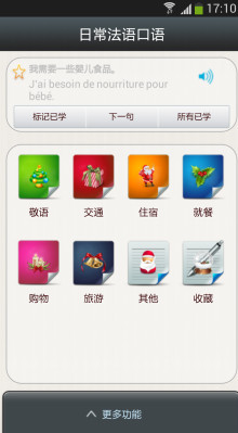 法语口语、听力练习的好帮手,完全离线使用,所有发音均采用原汁原味的标准读法,集日常生活用语于一体。【软件特点】
