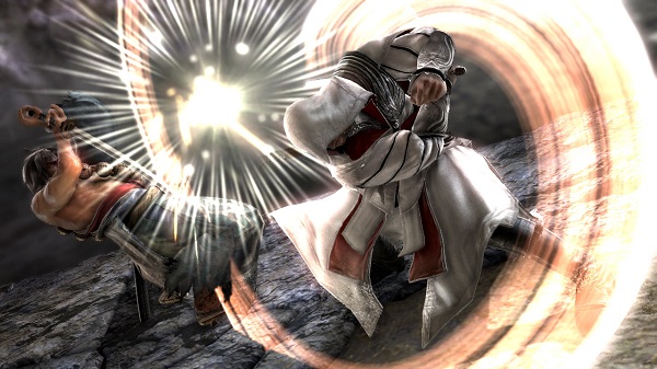 《灵魂能力5》的画面一如既往的优秀,人物建模无可挑剔(皮肤质感更细腻了),场景华丽且个性十足,在你的场景周围你可以看到士兵与巨人大战,飞龙飞来飞去,巨大的机关蜘蛛等等。本作的原创角色系统超级强大,在4代的基础上加入了大量面部油彩、服装花纹选项以及印章(纹身)功能,部分小饰品可以自定义形状并设置在角色身体任何位置,由此衍生出一些很棒的创意。此外虽说在人设上有点微词但本作一些新角色还是比较出彩的,薇欧拉和zwei的造型和招式也都非常有意思。