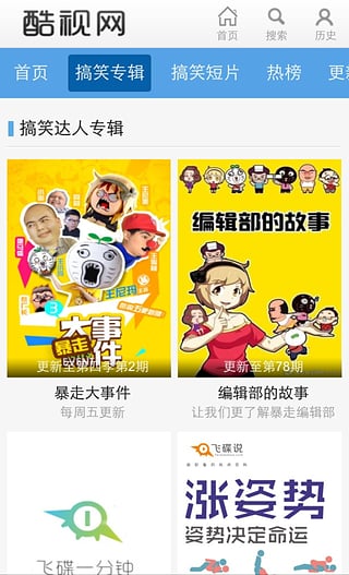 酷视网是一个搞笑视频分享平台,网罗最新、最全的国内外搞笑视频集锦,在酷视网您能随时随地观看到搞笑视频,并与您的朋友一起分享、欢笑,搞笑视频笑死人不偿命!【软件特点】
