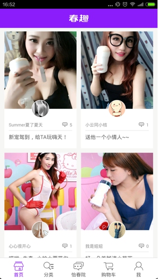 春趣,一个专门贩卖爱情趣味辅助神器的掌上APP,各色痴男怨女,嗨谈关于“爱”的一切。TT、情趣内衣、调情器具等优质趣品私密直送。话唠社区汇聚海量用户,初恋暗恋劈腿姿势技巧……关于“爱爱”的一切无所不包,经验叨逼叨无节操无底线。【评测】