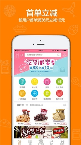 v4.3.01、闪购啦,零食生鲜等你抢,包邮哦~