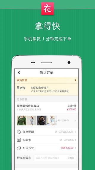 衣联进货宝 让服装批发拿货更加便捷,省时省心,不须长途跋涉,手机就能逛服装批发市场。【功能简述】