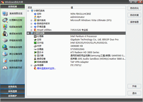 从系统信息检测到调校、从系统清理到维护,Windows优化大师都为您提供比较全面的解决方案。Windows优化大师同时适用于Windows98/Me/XP/2000/2003/Vista操作系统,提供了全面有效、简便安全的:系统检测;系统清理;系统维护;系统优化等功能,让您的电脑始终保持在最佳状态。