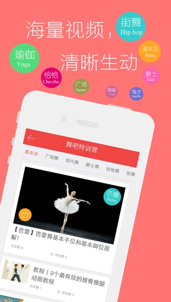 *【海量课程分享】舞吧,特邀舞蹈大师精心打造,海量免费课程分享,涵盖瑜伽、肚皮舞、EXO咆哮、广场舞、鬼步舞、爵士舞、恰恰舞、机械舞、街舞、芭蕾舞、幼儿歌舞等等,视频、资讯、表演。一大波舞蹈课程即将更新上线……*【分解教学】分解教学,一步一步教,专治零基础,再也不用担心学不会跳舞啦!!只为让跳舞更简单、更有趣!