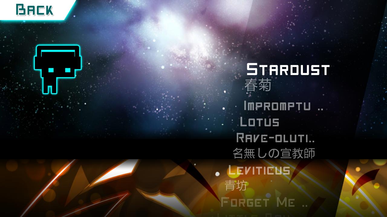 游戏内包含过百个谱面,由入门的Basic级渐进至资深玩家也不感乏味的Hard级、什至超越Hard的自定义超难度谱面”Mega”、”Giga”级。